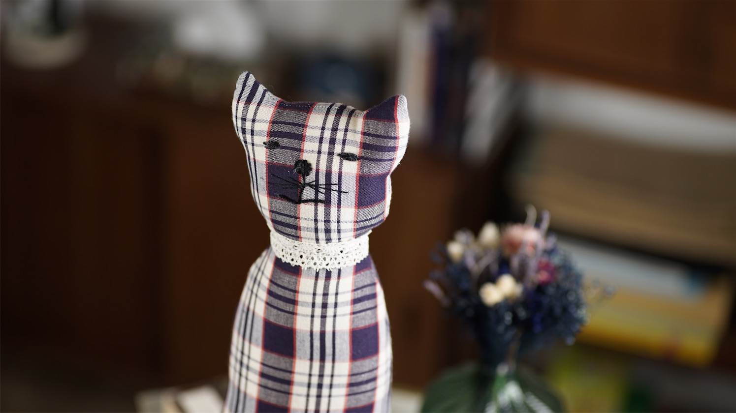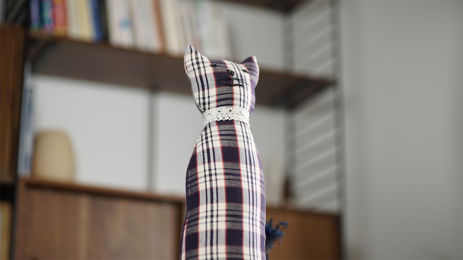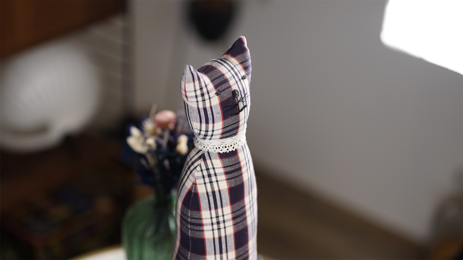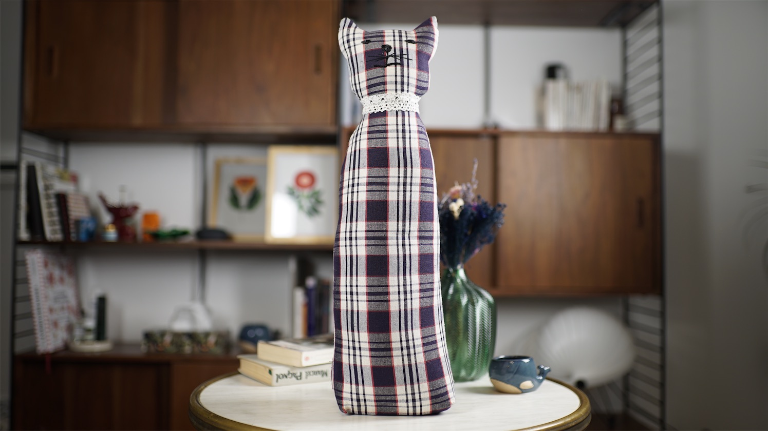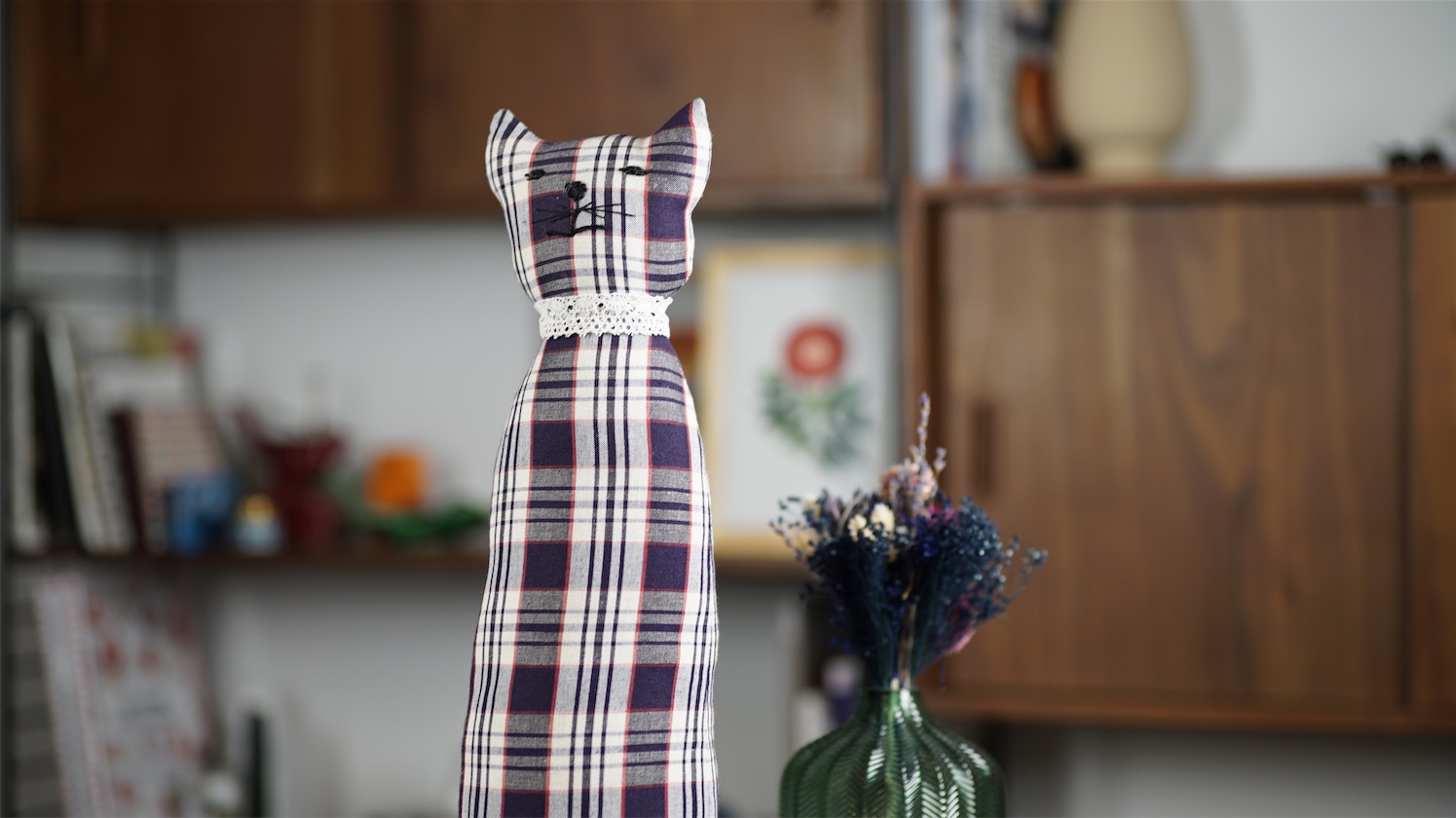 Grand chat en kelsch lesté, confectionné à la main ce qui rend chaque pièce “unique”.