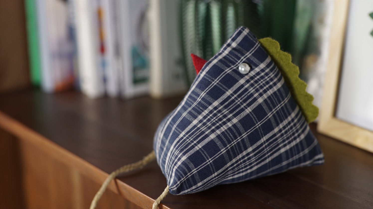 Poule en kelsch, objet de décoration… de l’association.Crête et bec en laine bouillie.