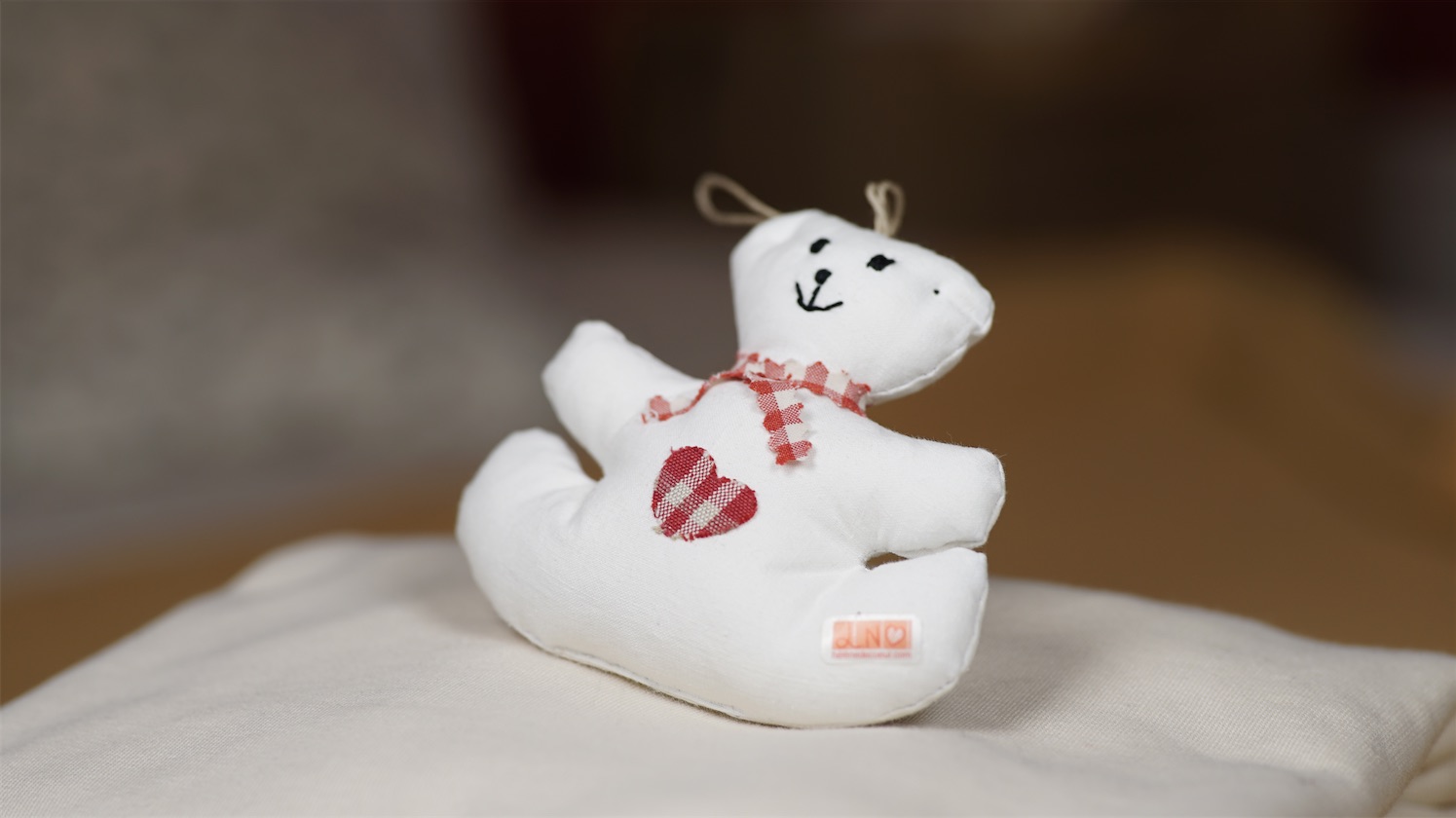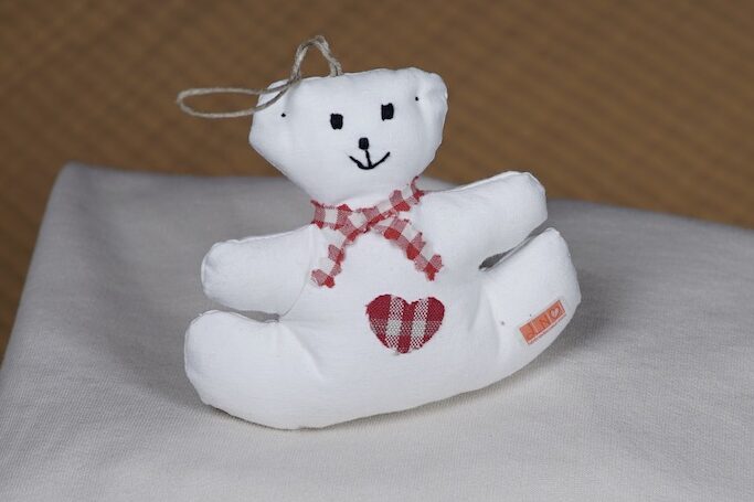 Chaque pièce est confectionnée avec amour par nos bénévoles. Ce sont des objets qui présentent des singularités : coutures, formes, sourires, yeux… de charmantes particularités qui font des pièces Hélène de Cœur des objets uniques.