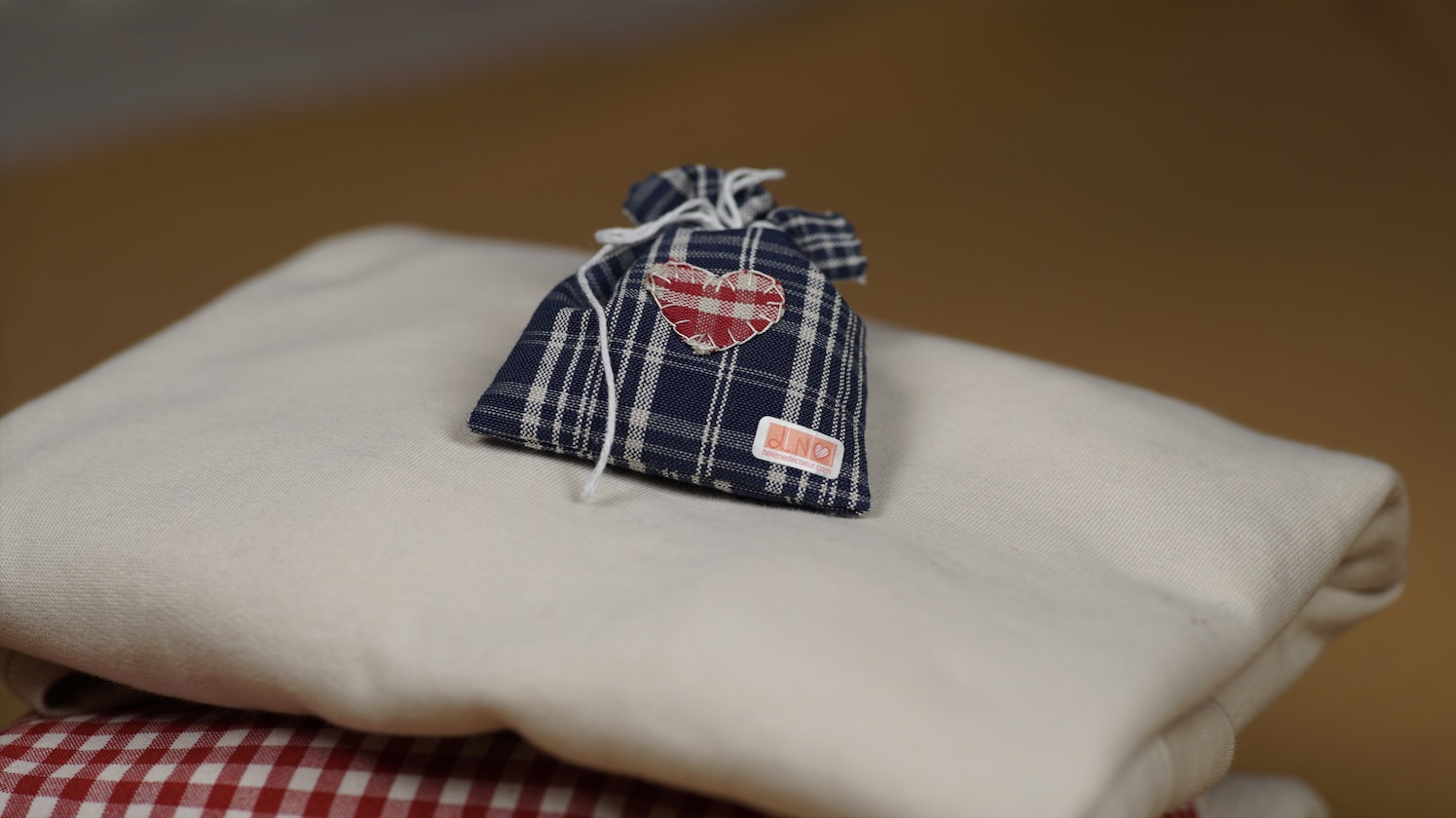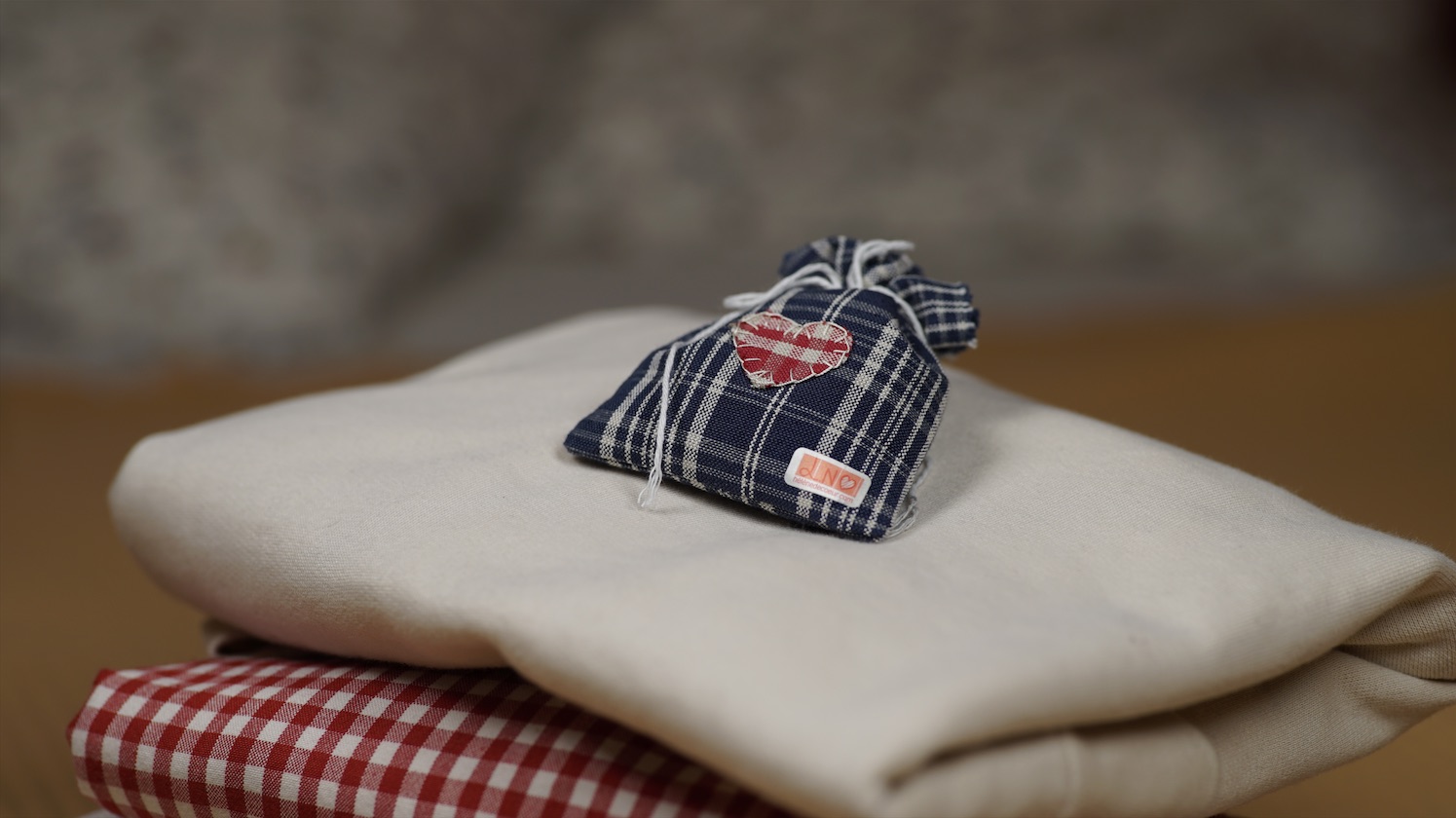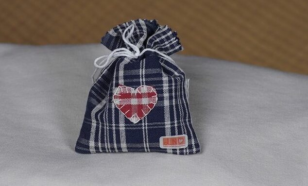 Pochette en kelsch contenant de la lavande idéale pour parfumer vos armoires, confectionnée à la main par les bénévoles de l’association.