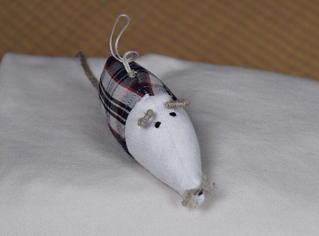 Souris en kelsch, confectionnée à la main… de l’association. Connaissez vous la chanson ” une souris verte qui dansée dans l’herbe…