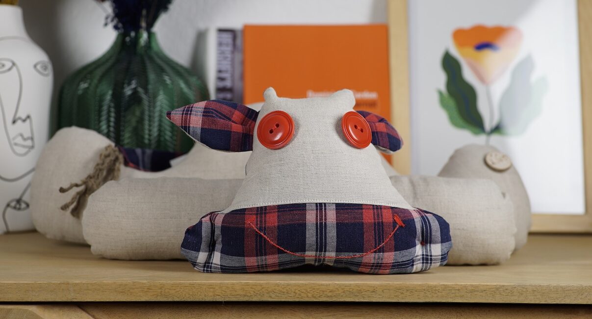 Chaque pièce est confectionnée avec amour par nos bénévoles. Ce sont des objets qui présentent des singularités : coutures, formes, sourires, yeux… de charmantes particularités qui font des pièces Hélène de Cœur des objets uniques.